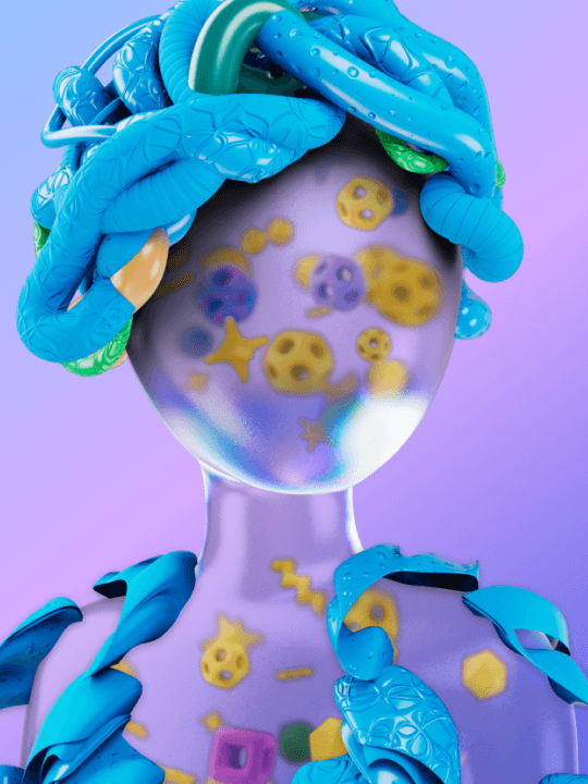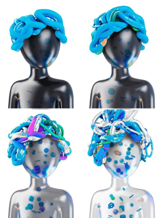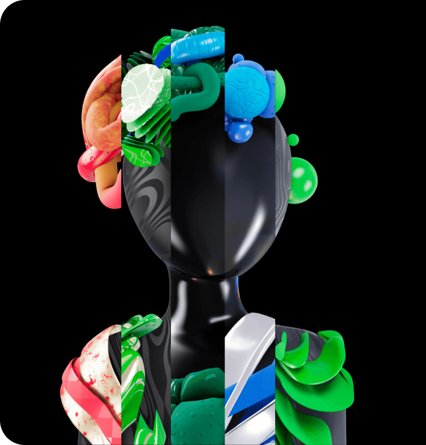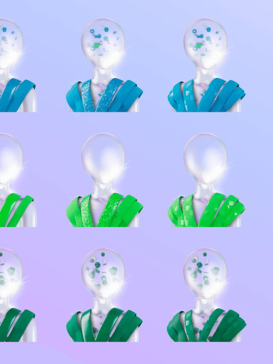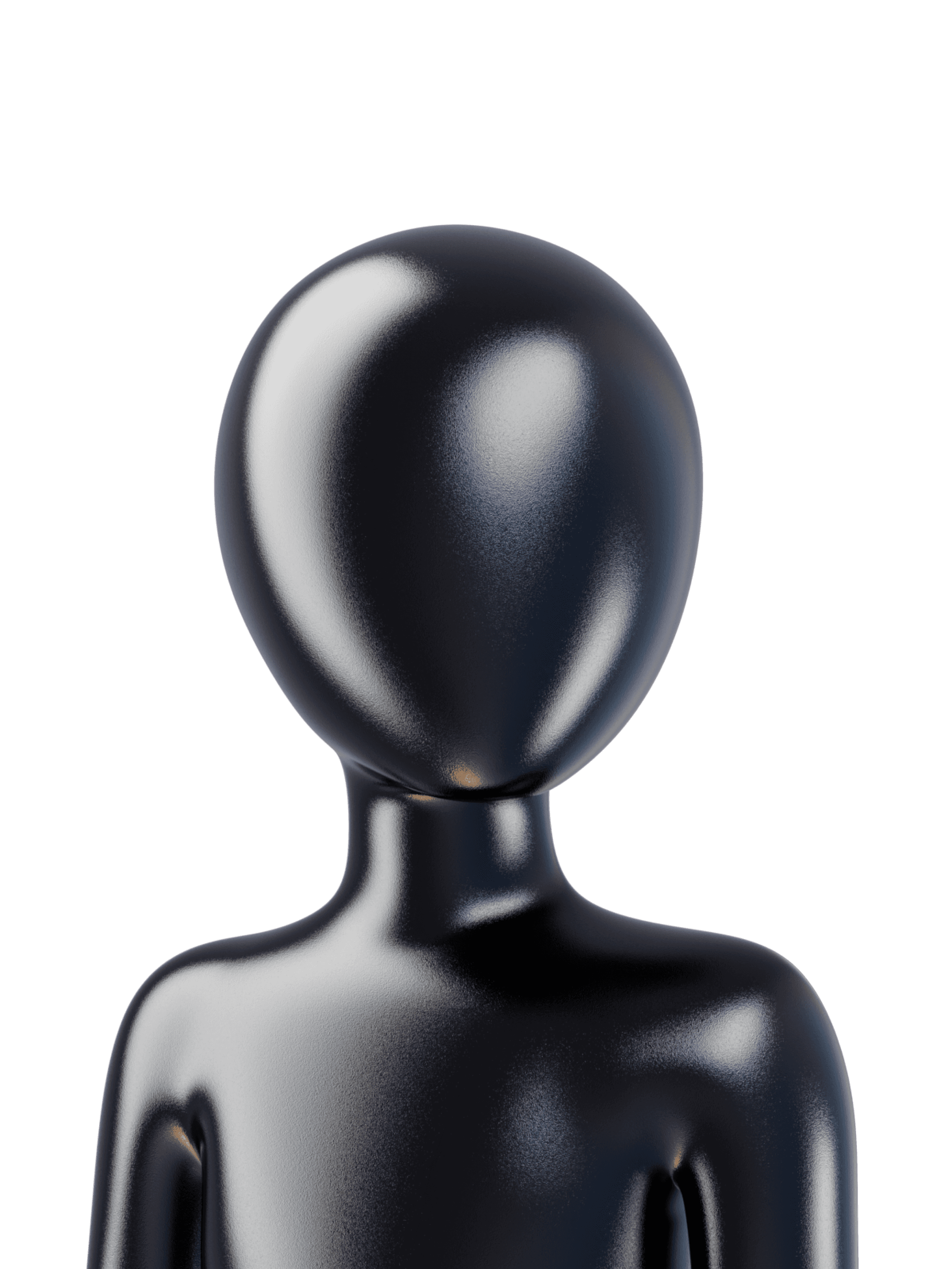 We found the final pose and shape for the body and added levels to it. Over time, the body would evolve from solid to fully transparent. The concept came from the idea of blockchain transparency.